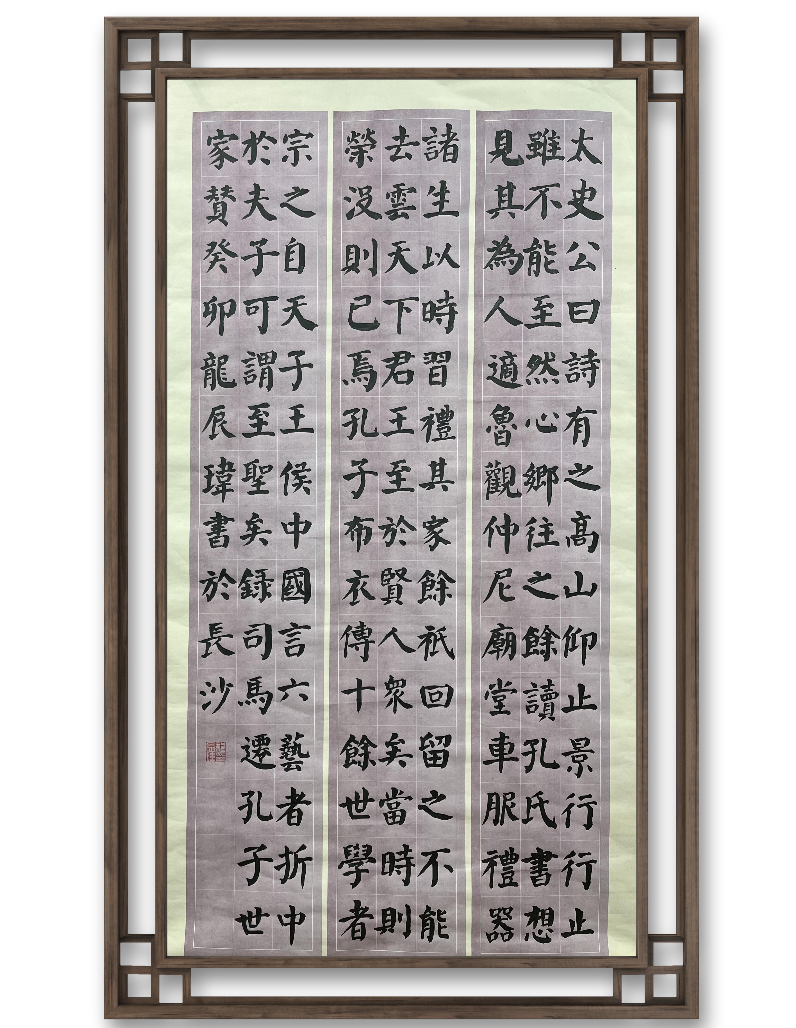 描绘了孔子家族的家风和家训,强调了家族的重要性和后代对儒家思想的传承,用毛笔颜体风格去表现作者对孔子的敬畏之心。